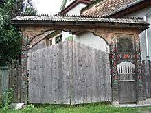 The detailed memoire of the Székely nobleman, Ferenc Mikó, is an important source of Transylvanian history between 1594 and 1613.[167] The development of large estates transformed the Székely society.[168] More than a hundred peasants worked on the domains of the wealthiest landowners.[169] They[note 12] renovated their old castles, or built new castles, strengthening them by walls and towers in the 17th century.[170] Lesser noblemen's manors were mostly decorated by wooden "Székely gates".[171]