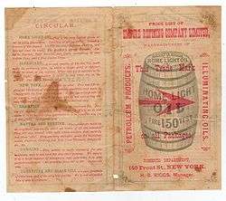 The principal product of the oil in the 19th century was kerosene, which quickly replaced whale oil for illuminating purposes in the United States. Originally dealing in whale oil which was widely used for illumination, Charles Pratt (1830–1891) of Massachusetts was an early pioneer of the natural oil industry in the United States. He was founder of Astral Oil Works in the Greenpoint section of Brooklyn, New York. Pratt's product later gave rise to the slogan, "The holy lamps of Tibet are primed with Astral Oil." He joined with his protégé Henry H. Rogers to form Charles Pratt and Company in 1867. Both companies became part of John D. Rockefeller's Standard Oil in 1874.