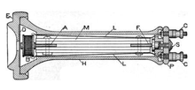 For a short period of time, acoustic telephones were marketed commercially as a niche competitor to the electrical telephone, as they preceded the latter's invention and didn't fall within the scope of its patent protection. When Alexander Graham Bell's telephone patent expired and many new telephone manufacturers began competing for customers, acoustic telephone makers quickly went out of business. Their maximum range was very limited, but hundreds of technical innovations, resulting in about 300 patents, increased their range to approximately a half mile (800 m) or more under ideal conditions.[2] An example of one such company was the Pulsion Telephone Supply Company created by Lemuel Mellett in Massachusetts, which designed its version in 1888 and deployed it on railroad right-of-ways.