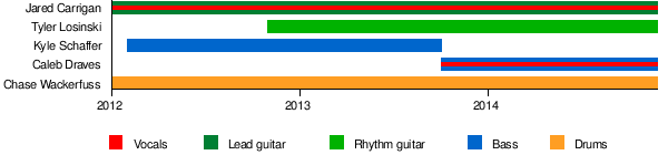 - Jared Carrigan – vocals, lead guitar, (2012–2014)