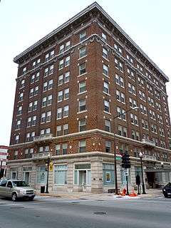 The Hotel Aurora, also known as Aurora Hotel, is a hotel built in 1917 on Stolp Island in Aurora, Illinois.