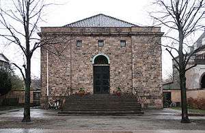 The House of Unitarians in Copenhagen, Denmark, is the chapel of the Danish Unitarian Church Society. It was designed by Carl Brummer and opened in 1927 on Østerbrogade, now Dag Hammerskjolds Allé. Brummer was asked to design a building which reflected the Unitarian ideals of tolerance towards other religions. He sought to achieve this by creating a building which combined elements from different monotheistic religions, such as Christianity (the original basilica shape), Jewish synagoges (two balconies) and Greek Orthodox temples (the Greek fret).[1]