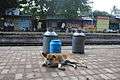- A dog and some milk churns on the platform of Hridaypur local train station in Kolkata.