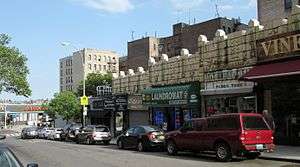 In the years after World War II, the neighborhood was referred to as Frankfurt-on-the-Hudson due to the dense population of German and Austrian Jews who had settled there.[22] A disproportionately large number of Germans who settled in the area had come from Frankfurt-am-Main, possibly giving rise to new name.[19] No other neighborhood in the city was home to so many German Jews, who had created their own central German world in the 1930s.[23]