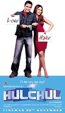 Hulchul (translated: Commotion) is a 2004 Hindi film directed by Priyadarshan. The story is adapted from the 1991 Malayalam film Godfather. The film has a huge star cast including Akshaye Khanna, Kareena Kapoor Khan, Arshad Warsi, Sunil Shetty, Amrish Puri, Paresh Rawal, Jackie Shroff, Arbaaz Khan, Shakti Kapoor, Farha Naaz, and Laxmi.[1]
