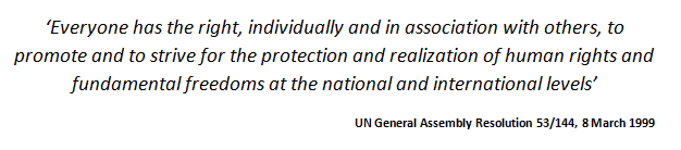 - ↑ National and International Campaign for the Right to Defend Human Rights, Colombia: Human Rights Defenders Under Threat