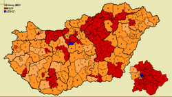 Parliamentary elections were held in Hungary on 7 April 2002, with a second round of voting in 131 of the 176 single member constituencies on 21 April.[1][2] Although Fidesz remained the largest party in the National Assembly despite receiving fewer votes than the Hungarian Socialist Party, the Socialist Party was able to form a coalition government with the Alliance of Free Democrats.