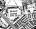 From the club's inception in 1880, Manchester City - first known as St Mark's (West Gorton), then as West Gorton A.F.C. and by mid-1884 as just Gorton A.F.C. - had struggled to find a stable location to base themselves. Originally simply playing on a dangerously bumpy patch of grass near to the church of their origin, the club quickly signed an agreement to ground-share with the Kirkmanshulme Cricket Club before being turfed out only a year later. Three further pitches were then created on wasteland over the following four seasons, but all proved inadequate for one reason or another. When their fifth pitch arrangement collapsed in 1887, with the landlord of the Bulls Head Hotel demanding a rent increase for the use of a nearby field, the club were forced to seek an alternative venue.[2] Then-captain Kenneth McKenzie discovered an area of waste ground on Hyde Road in Ardwick and near to his place of work, and informed the club committee.[3] Lawrence Furniss, the club secretary, ascertained that the ground was owned by the Manchester, Sheffield and Lincolnshire Railway Company. Following an initial letter of enquiry by Gorton player Walter Chew to railway company estate agent Edwin Barker,[4] Furniss and Chew negotiated a seven-month lease at a cost of £10,[2] and the club changed its name to "Ardwick A.F.C." to reflect the new location. A few weeks later, using materials provided by the nearby Galloway engineering works,[5] a rudimentary football ground was ready for use. The ground had no changing rooms, and teams changed in a nearby public house, the Hyde Road Hotel, where the football club held business meetings. The ground's first seating area was built in 1888, with 1,000 seats,[6] paid for by Chesters Brewery in return for the right to be the sole provider of alcohol inside the ground.[5] Ardwick were admitted to the Football League in 1892. The first league match held at Hyde Road was a 70 Ardwick win against Bootle on 3 September 1892.[7] Two years later the club reformed as "Manchester City F.C."
