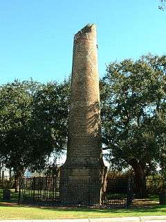 The Hyer—Knowles Planing Mill Chimney in Pensacola, Florida is all that remains of an 1854 steam-powered sawmill.[2] When the Confederacy abandoned the city in 1862, all the mills were destroyed so they could not be used by the Union. The only part of the building that survived was the chimney.[3] It is now part of Chimney Park, a wayside park along US 90. The chimney was added to the National Register of Historic Places on May 24, 2012.[1]
