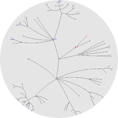 A basic hyperbolic tree. Nodes in focus are placed in the center and given more room, while out-of-focus nodes are compressed near the boundaries.