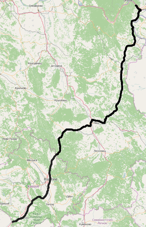 | 03536 | 18.867 km (11.723 mi) | 306.953 km (190.732 mi) | Rudare - Kosovo and Metohija border (Merdare) |