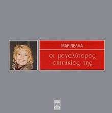 Marinella - I megaliteres epitihies tis (Greek: Μαρινέλλα - Οι μεγαλύτερες επιτυχίες της; English: Marinella - Her greatest hits) is a compilation of recordings by popular Greek singer Marinella, under the Minos EMI series I Megaliteres Epitihies (Greatest hits). This album is part of the compilation. It was released in November, 2001 in Greece and includes 16 studio recordings by Marinella from 1988 - 1995 for the Minos EMI.[1][2][3]