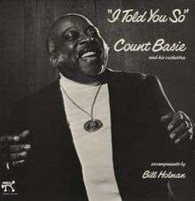 I Told You So is a 1976 album recorded at RCA studios, New York City on January 12, 13 and 14 1976 and released in 1976, featuring Count Basie and his orchestra. All the titles were arranged by Bill Holman. Sound engineer was Bob Simpson and the tape editor was Ben Jordan. The producer was Norman Granz.