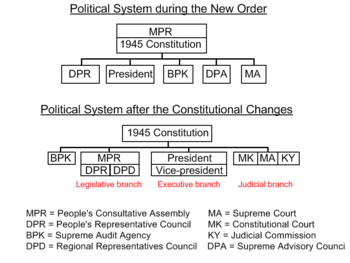 - Stipulating democratic, direct elections for the president, instead of the president being elected by the People's Consultative Assembly