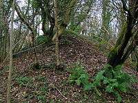 An opencast mine was established by Irvine Development Corporation (IDC) and the National Coal Board/British Coal at Sourlie in the 1983. Linnbed, Parrot, Turf and Wee coals were mined; stoops from the 'Hutch Longwall' method of coal extraction within old collieries were exposed during excavations.[31] All the suitable coals had been removed by 1986 and reclamation completed by 1987. The Draught Burn was diverted to accommodate this and the surviving 'Settling pond or lagoon' comes from the project.[41]