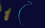 Formed on December 5 and became extratropical on December 21. It crossed Madagascar, but caused little if any damage.[3] Throughout Madagascar at least 150 mm (5.9 in) of rain fell, with northern areas receiving totals in excess of 300 mm (12 in). Parts of Mozambique also recorded heavy rainfall in relation to Cela, with between 75 and 150 mm (3.0 and 5.9 in) falling in northern regions of the country.[4]