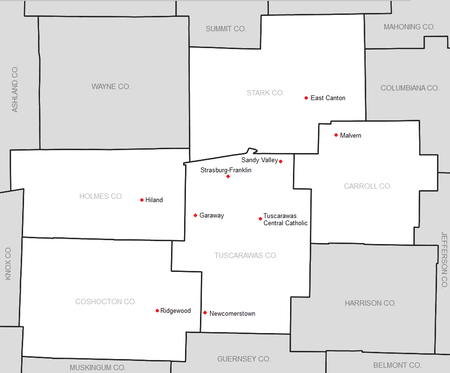 | Tuscarawas Central Catholic | Saints | New Philadelphia | Black, Gold, White |