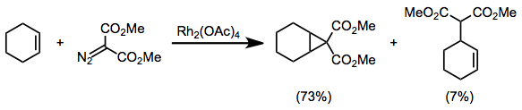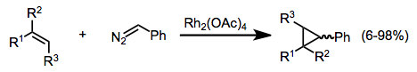 Other diazo compounds besides diazocarbonyl compounds have been used for rhodium-catalyzed cyclopropanations;[28] however, these substrates are much more difficult to handle and unstable than diazocarbonyl compounds. Thus, they have not been extensively adopted for organic synthesis.