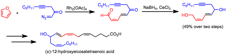 Enantioselective intermolecular cyclopropanation has been applied to the synthesis of chiral cyclopropane antibiotics, such as cilastatin.[24] (12) Tandem cyclopropanation/fragmentation is a key step in the synthesis of 12-hydroxyeicosatetraenoic acid.[25]