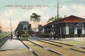 The rail was part of the Beebe Syndicate, a group of 12 high-speed, interurban, electric train lines which ran from Buffalo, New York, through Rochester and Syracuse, then north to Oswego on Lake Ontario.[30]