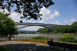 Inwood's main local thoroughfare is Broadway, which is co-designated US 9 at this point. Highway access to the area is via the Henry Hudson Parkway to the west, the Harlem River Drive to the southeast (ending at Dyckman Street), and the Alexander Hamilton Bridge over the Harlem River from the Trans-Manhattan Expressway to the Cross Bronx Expressway (both of which carry I-95 and U.S. 1). Other bridges to the area include the Washington Bridge at 181st Street, crossing the Harlem River to the Bronx; the University Heights Bridge, from 207th Street in Manhattan across the Harlem River to Fordham Road in the Bronx; the Broadway Bridge, across the Spuyten Duyvil Creek north to Marble Hill; and the Henry Hudson Bridge across Spuyten Duyvil Creek to the Bronx. Inwood's main commercial shopping streets are Broadway, Dyckman Street, and West 207th Street. Manhattan's first Slow Zone was installed on the side streets west of Broadway in 2012; it is similar to other Slow Zones citywide installed as part of Vision Zero, which commenced under Mayor Bill de Blasio in 2014.[16]