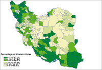 | Percentage of votes that went to Mohammad Khatami per county | |||||||||||||||||||||||