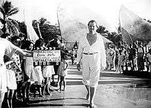 In 1981 Fred Chandler, Paramount's director of technical services, was looking for storage space in the studio's Hollywood vault when he happened across the long-forgotten footage from It's All True. He found 250 metal film cans labeled "Bonito" and "Brazil", each holding held eight to ten rolls of black-and-white nitrate negative.[26] Seeing a few shots of the "Jangadeiros" sequence, Chandler recognized it immediately. Orson Welles was told of the discovery but he refused to look at it. "He told me the film was cursed," said Chandler, who donated the film to the American Film Institute. Chandler raised $110,000 to fund the creation of a short documentary film—It's All True: Four Men on a Raft (1986)—using some of the footage.[27]