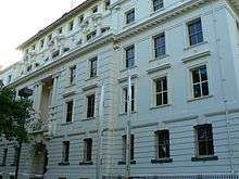 Many examples of this style are evident around the government district of Melbourne, notably the "Old Treasury" Building (1858) and the fine range of state and federal government offices facing the gardens in Treasury Place. No.2 Treasury Gardens[27] (1874), in particular would not be out of place in Whitehall or Belgravia in London. This dignified, but not overly exuberant style for civil service offices contrasted with the grand and more formal statements of the classical styles used for Parliament buildings. The acceptance of the Italianate style for government offices was sustained well into the 20th century when, in 1912, John Smith Murdoch designed the Commonwealth Office Buildings as a sympathetic addition to this precinct to form a stylistically unified terrace overlooking the gardens.