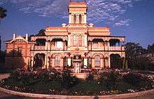 The Italianate style was immensely popular in Australia as a domestic style influencing the rapidly expanding suburbs of the 1870-1880s and providing rows of neat villas with low-pitched roofs, bay windows, tall windows and classical cornices. The architect William Wardell designed Government House in Melbourne—the official residence of the Governor of Victoria—as an example of his "newly discovered love for Italianate, Palladian and Venetian architecture."[26] Cream-colored, with many Palladian features, it would not be out of place among the unified streets and squares in Thomas Cubitt's Belgravia, London, except for its machicolated signorial tower that Wardell crowned with a belvedere.