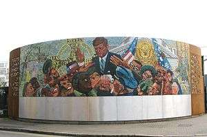 The J. F. Kennedy Memorial in Birmingham, England, is a memorial mosaic mural to John F. Kennedy, by Kenneth Budd.[1]
