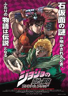 JoJo's Bizarre Adventure: Phantom Blood (ジョジョの奇妙な冒険 ファントムブラッド JoJo no Kimyō na Bōken Fantomu Buraddo) is a 2007 Japanese anime film based on Part 1 of the JoJo's Bizarre Adventure manga series entitled Phantom Blood. The film was released on February 17, 2007, to commemorate JoJo author Hirohiko Araki's 25th year of publishing.[1][2] Animation was handled by Studio A.P.P.P., the same staff who handled the earlier JoJo's Bizarre Adventure OVA based on Part 3 Stardust Crusaders. The film had a limited screening in Japanese theaters and has never been released on home video.