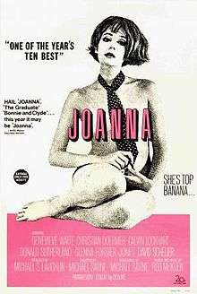 Joanna is a 1968 British drama film, directed by Michael Sarne and set in swinging London. It was listed to compete at the 1968 Cannes Film Festival,[3] but the festival was cancelled due to the events of May 1968 in France.