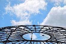 Called in by the Imperial Continental Gas Association in 1863 to replace a failed roof over a telescoping gas holder, Schwedler devised a workable solution but thinking further about the problem, in 1866 published an article describing a new type of iron cupola that was simpler, lighter, and as sturdy:[21] it takes the form of an unsupported spheroidal steel vault, rather than beams, and was normally used to span distances of 2545 m.[22][23] He used Schwedler cupolas in designing four new gas holders for Berlin's street lighting, of which the one now known as the Fichte-Bunker (1874) survives,[24][25] and the only deterrent to their use today is the cost of labour.[23][26] He designed the cupolas on Berlin's New Synagogue (1863)[12][27] and the Sedan Panorama at Alexanderplatz Station.[28]