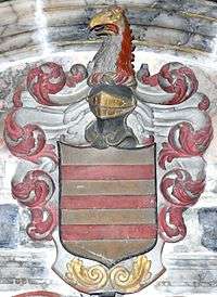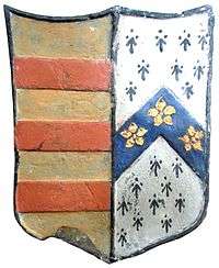 Berry married Rebecca Ventris (d.1696), of the Ventris family of Granhams, Great Shelford, Cambridgeshire, as identified from the arms of Ventris shown on her monument in Stepney Church, London.[7] The Heralds' Visitation of Cambridgeshire gives only a short pedigree of the Ventris family ending before Rebecca's birth, but gives the family's arms as: Azure, a dolphin between two bendlets wavy an annulet argent. She may have been a sister of Sir Peyton Ventris (1645-1691), eldest surviving son of Edward Ventris (d.1649), barrister. Her portrait was painted by Michael Dahl to form a pair with that of her husband.[8] The marriage was without progeny. Rebecca married secondly Thomas Elton of Stratford Bow, London. Her mural monument exists on the east wall of the chancel of St Dunstan's Church, Stepney, and displays an heraldic escutcheon showing the arms of Elton (Paly of six, on a bend three mullets) impaling Ventris. It is inscribed with the following verse recorded by Daniel Lysons in 1795:[9]