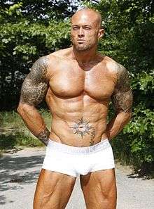John Joseph Quinlan (born October 30, 1974)[3][4] in Winchester, Massachusetts, is a former American bodybuilder and professional wrestler who now works as a fitness model, fashion model, art model, romance cover model[6] and actor. He is also a male underwear model. Quinlan has appeared in a variety of publications, including World Physique and Planet Muscle Magazine.[7] Quinlan has appeared in gym video shoots[8] and his image has been used online in many features[9][10] and interviews.[11][12]