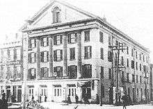 Booth made his stage debut at age 17 on August 14, 1855 in the supporting role of the Earl of Richmond in Richard III at Baltimore's Charles Street Theatre.[29][30][31] The audience jeered at the inexperienced actor when he missed some of his lines.[29][32] He also began acting at Baltimore's Holliday Street Theater, owned by John T. Ford, where the Booths had performed frequently.[33] In 1857, Booth joined the stock company of the Arch Street Theatre in Philadelphia, Pennsylvania where he played for a full season.[34] At his request, he was billed as "J.B. Wilkes", a pseudonym meant to avoid comparison with other members of his famous thespian family.[29][35] Jim Bishop wrote that Booth "developed into an outrageous scene stealer, but he played his parts with such heightened enthusiasm that the audiences idolized him."[32] In February 1858, he played in Lucrezia Borgia at the Arch Street Theatre. On opening night, he experienced stage fright and stumbled over his line. Instead of introducing himself by saying, "Madame, I am Petruchio Pandolfo", he stammered, "Madame, I am Pondolfio Pet—Pedolfio Pat—Pantuchio Ped—dammit! Who am I?", causing the audience to roar with laughter.[29][36]