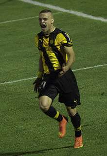 ![]() Rodríguez celebrating a goal for Peñarol | |||