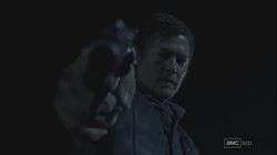 As a visibly distraught Rick hesitates to shoot Dale, Daryl takes the gun and inevitably shoots Dale in the head. Lesley Goldberg of The Hollywood Reporter suggested that producers were subtly building up prior to the moment. Kirkman felt this marked Daryl's place in the group and was closure for the deceased Sophia Peletier,[1] whose death caused Daryl to pull away from interacting with the group.[1] Kirkman iterated that such actions were the testaments of his "putting everything on the line and opening himself up in a way he had never done before because his childhood was so messed up.";[1] "So when he found out she was dead and in the barn all the time, that's why he retreated and separated himself from the group. It was because he allowed himself to care and it just backfired on him in a big way. He didn't want to be a part of the group and have those emotions and care about these people. So he's been distancing himself from them up until this point, and now he's seeing that these people need him and that he can fill a role and in being that harsh distant guy, you can do the things that no one else wants to do. He wants to step in and take that burden away from Rick for a moment. Rick is the one who stepped up and shot Sophia. Daryl saw that and because of his pain over the loss of Sophia he couldn't do that. But when he sees Rick hesitate to do the same thing with Dale he knows: this is my moment, this is where I can prove my worth, and he steps in and does what he needs to do."[1]