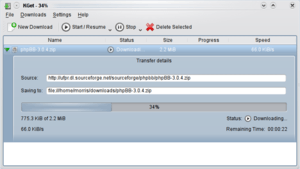 KGet is a free download manager for KDE, and is part of the KDE Network package. By default it is the download manager used for Konqueror, but can also be used with Mozilla Firefox[2] and rekonq. KGet was featured by Tux Magazine[3] and Free Software Magazine.[4]