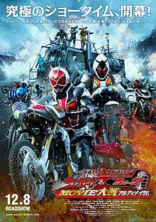 Kamen Rider × Kamen Rider Wizard & Fourze: Movie War Ultimatum (仮面ライダー×仮面ライダー ウィザード&フォーゼ MOVIE大戦アルティメイタム Kamen Raidā × Kamen Raidā Wizādo Ando Fōze Mūbī Taisen Arutimeitamu) is a crossover film featuring the main characters of Kamen Rider Wizard and Kamen Rider Fourze as the part of the annual winter "Movie War" franchise. It was released in Japan on December 8, 2012.[1] Like previous Movie War films, the second Kamen Rider of Kamen Rider Wizard, Kamen Rider Beast, makes his debut in the film.