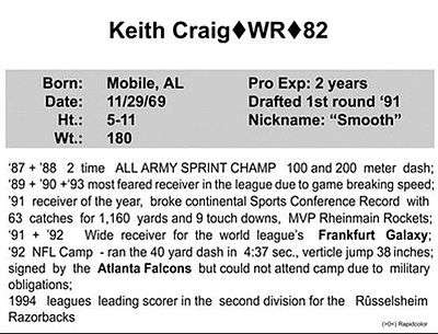 Rheinmain Rockets In 1993, while playing for Rheinmain Rockets, Craig was named CSC All-conference wide receiver, and voted MVP of the Championship game. He also broke the CSC receiving records with 63 catches for 1,160 yards and 9 touchdowns.[9]