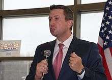 ![]() Martin speaking at the 2016 Olmsted County DFL Convention | |