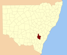 King County was one of the original Nineteen Counties in New South Wales and is now one of the 141 Cadastral divisions of New South Wales. It is in the area to the east of Yass. The northern part of it lies between the Lachlan River and the Boorowa River, including the locations of Frogmore, Taylors Flat, Gunnary, Rugby and Rye Park. The Crookwell River is also part of the northern boundary. The Yass River is the southern boundary.