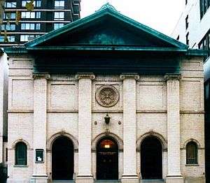 - ↑ The engraved illustration in Mrs Martha Joanna Lamb and Mrs Burton Harrison, History of the City of New York: its origin, rise and progress, vol. 3 p. 522, though called "more of a Grecian type of architecture", shows characteristic Federal architecture in its balustraded roofline, its half-oval fanlight in the central pediment, and the widely spaced slender columns of the portico; see also Eliza Greatorex drawing (New York Public Library).