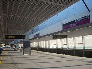 Krieau is a station on Line U2 of the Vienna underground railway (U-Bahn) network.[1] It is located in the Leopoldstadt district of the city. It opened in 2008. Krieau Station was originally to be named Trabrennstraße, but the planned name was changed in 2006, two years before the station opened.