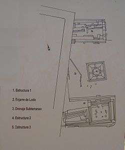 It is important to note the presence of streets, a storm drainage system of and a religious and administrative center, with numerous monuments, as well as housing areas, areas with homes erected on platforms both circular and rectangular, with cane and adobe walls and palm ceilings, per the needs of a highly seismic region.[3]