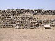 It is located northwest of the square, its base is 43 by 9 m; It is large and its construction is made with from overlaid stepped platforms similar to Structure 1. It has two entrances to the top; its elevation does not exceed 3 meters. There are holes at its base, probably to hold water or storage.