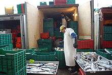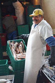 The workday starts early, at four am, when trucks loaded with fresh seafood arrive.[1] Between 20,000 and 25,000 customers pass through the facility on any given day.[1][6] Many clients are restaurant owners from in and around Mexico City.[1] From 6 am, when stalls open to 6pm, the market is filled with shouts of merchants attracting customers, as well as the sounds of blades as mountains of fish and other seafood are gutted, chopped and otherwise prepared. The market employs about 7,500 people, many of whom are from coast areas and used to the strong odor of fish the permeates the interior.[1]