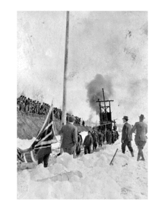 The Last Spike of the Grand Trunk Pacific Railway was driven one mile east of Fort Fraser, British Columbia, Canada on April 7, 1914.