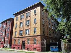 The building was built in 1914 for a real estate agent, and was designed by Bruno Wozny, a German immigrant. The building houses sixteen units, which were in its early years occupied by working-class people. Occupancy and the building's condition declined during the 1960s, when the area became a subject of urban renewal. The interior suffered from neglect and vandalism,[2] and has been completely modernized.